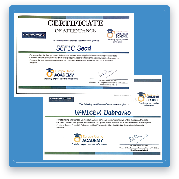 U periodu od 8.-13.02.2026. godine EUROPA UOMO je organiziralo Zimsku školu koja predstavlja trening i obrazovanje predstavnika udruženja pacijenata iz više zemalja EU i drugih članica ove Koalicije oboljelih od raka prostate.